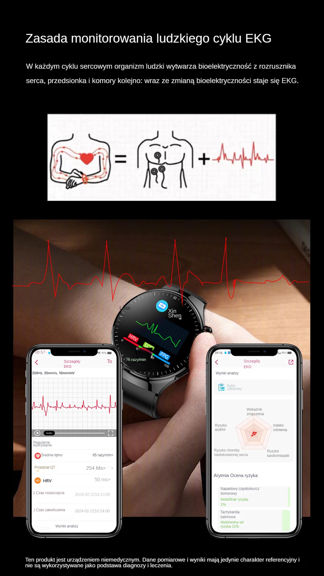 Synchronizacja danych: Obsługuje synchronizację z aplikacjami mobilnymi, możesz w dowolnym momencie przeglądać dane historyczne i trendy zdrowotne oraz w pełni zrozumieć swój stan zdrowia.